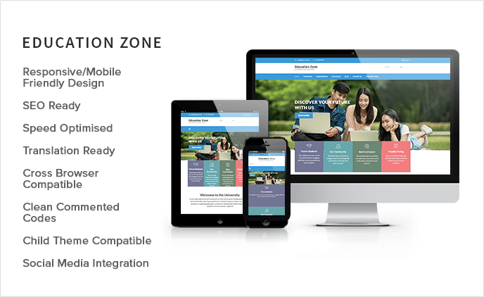 Education Zone WordPress theme is a perfect solution for LMS, Training Center, College, Academy, University, Primary School, High school and Kindergarten. Whether you are running a training center or a college, Education Zone theme will meet your expectation and give your customer a great experience. The theme is responsive/mobile-friendly and so your website will look gorgeous in the mobile and tablet devices. It is also translation ready.