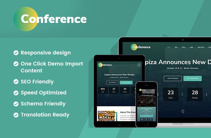 The Conference is a free WordPress theme designed to create a fully responsive, SEO friendly, and attractive website for promoting an event or conference. If you are planning an event, conference, seminar, symposium, or concert, this free theme will help you sell more tickets. The attractive UI and modern features of this theme are perfect to keep the visitors engaged on your website and turn them into customers. The Conference is quite easy-to-use; you can create a fully functional and professional website in no time without any prior knowledge or experience of coding.